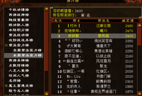 对玩家的品性要求严格的关系,我们帮里几乎没人会主动惹事,如果谁恶意惹是生非,即便你跟我关系再好,在是非面前,我讲理不讲亲。 我们玩大话组帮派,为的就是和一群志同道合、秉性相投的人愉快相处,大家互帮互助,平等相待,这才是最舒服的游戏方式。即使帮中有人因为现实的原因暂时离开,我们的帮派群也绝不会踢他出群,而是集体等候他有一天能再次回归,因为我们一天是兄弟,一世都是兄弟! 心态百炼成钢 只为兄弟有个好归宿 如今,烟雨阁从排名第一的位置掉到第二,又从第二掉到第三,其中的确经历过很多艰辛。下面也想和大家聊聊我所遇到的难处,不是为了吐槽,而是单纯讲述一下我的亲身感受,相信当过帮主,并且想当一个好帮主的人对此都深有体会! 烟雨阁面临过的最难状况,就是在龙吟东方开移民的时候,那时候真的太难了,既想保住甲级,又要维护好和帮中队伍的关系,很怕因为任何一支队伍的离开而影响到其他人。 那时,我自己出钱出力,只为帮派中的气氛能够积极向上,帮众们能有个安稳的家。但有时做得越多,在遭遇被骂的情况时内心就会更加气愤,也有过“我不想干了”这类冲动的情况,好在帮中的老人们一路都不离不弃,不会为了赏功堂的物资而离帮,过程中更是不断地鼓励支持我,让我在面对困境时多了很多坚持下去的信心。 为了帮派融洽的气氛,为了兄弟之间的感情,也为了帮众每天上线能有个嘻嘻哈哈、聊天笑闹的归宿,如今的我早已百炼成钢,寻常小事根本无法对我产生动摇,一心只想将帮派做得越来越红火,所以说“心态”真的是当一名帮主的首要因素! 至于排名第一第二还是第三,很多兄弟也都看开了,什么也比不上大家开心相处的感情,名次这东西总有一天会回来的! 这里我还想要特别感谢一个人,我的兄弟“胖胖靓”!因为我最近现实中实在太忙,在和他沟通之后,让他代管帮派一段时间。他也不负众望,在人员管理、组织活动、活跃气氛等方面都做得很好,真的为我分担了太多太多。 在结束前,我想对烟雨阁帮派许下三个愿望,希望有天会实现:首先是希望能跟大家有一次线下相聚的机会,我们面对面好好聊聊天,聚聚会;然后就是希望看见大家多多活跃,不要轻言离开;再有就是希望当初那些一起挺过困难又离开的兄弟们,以后全部都能归来! 最后,再次感谢兄弟姐妹们对我的认可,真的很感谢你们,未来我也会尽我的努力继续经营好帮派,一起守护好大家的烟雨阁!兄弟相伴情义深,未来携手过此生! [编辑:kiklfe]