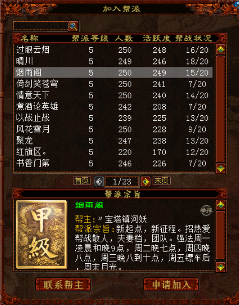 龙吟东方开移民后,不少离开游戏的兄弟都买了底子号回归烟雨阁,也正因有这群有爱的朋友,帮派目前的凝聚力很强,尽管大家都是普通玩家,我们每天上来单是做做任务,聊聊天也非常开心了;尽管烟雨阁不再是第一帮,大家也不会因输掉帮战而气馁,更不会为赏公堂一点奖励而斤斤计较,帮派气氛其乐融融。 我想,这不正是游戏原有的样子吗? 随着帮派不断壮大的过程中会有很多朋友申请入帮,但想要加入我们并不是一件容易的事。 烟雨阁对于帮众的第一考察要素就是“人品”二字,人品如果不过关,即使你有再好的物资我们都不要。如果人品不错,即使你是159级的号也不会被清理,这也是烟雨阁至今不散,也没再有任何帮派找麻烦的原因。