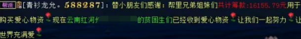 帮主在帮派频道感谢捐献爱心的兄弟姐妹们
