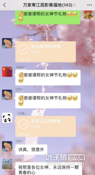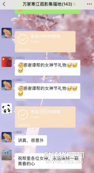 直到如今,我最庆幸的就是通过帮派认识了很多朋友,大家即使以后不再一起玩了,但我觉得当初的感情还会一直在,即便多年后回想起来,也是一件非常值得开心的事吧! 女神节当天 给帮派女玩家派送福利 记者采访我的时候,恰好是3.8女神节,帮派大哥给帮里的女玩家每人发红包,本来我们以为是8.88那种,结果打开一看是100的,瞬间大家都高兴坏了,然后跑上游戏刷喇叭感谢。 这里必须要上一波微信截图,感谢大哥们对女生的关怀: