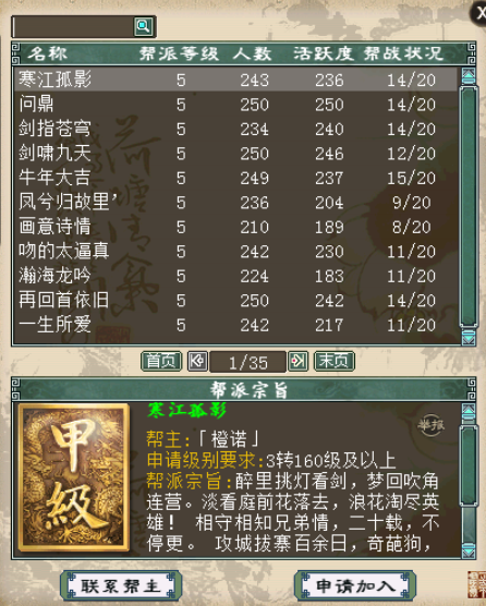 最初的寒江孤影算是个休闲帮派,基本都是休闲生活类玩家撑起来的,那时帮里也没有主力队,所以在帮战方面也没有非常重视,直到我们整支队伍过来以后,帮派才开始了逐渐转型。