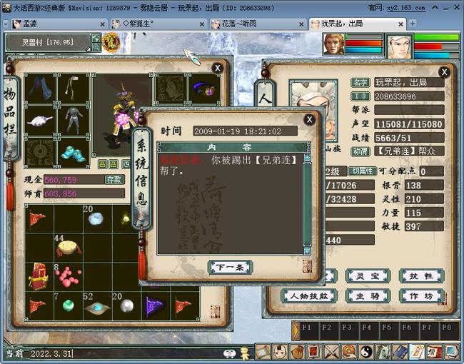 现在依稀还能记得几位特别相熟的人物名字,每次看打这些,都会陷入到一段回忆中去摸索那些曾经记得,现在却即将在记忆中淡去的东西!记忆!想到这里的时候,终于想明白老铁其实是在寻找曾经的记忆,它们并没有消失,只是不在眼前,让人记不起。只是接触不到,让人没有感官刺激。也许他看到某件装备的时候,会回想起是区里某位1转的大哥帮他合的物理宝石;也许他看到某个药品的时候,会回想起是某位朋友送他的珍藏;也许他看到某条好友消息的时候,他会回想起自己走的时候都没来得及和他们说一声。也许,这些就是他想找的东西。 离帮时间:2009年;标定时间:2022年3月31日