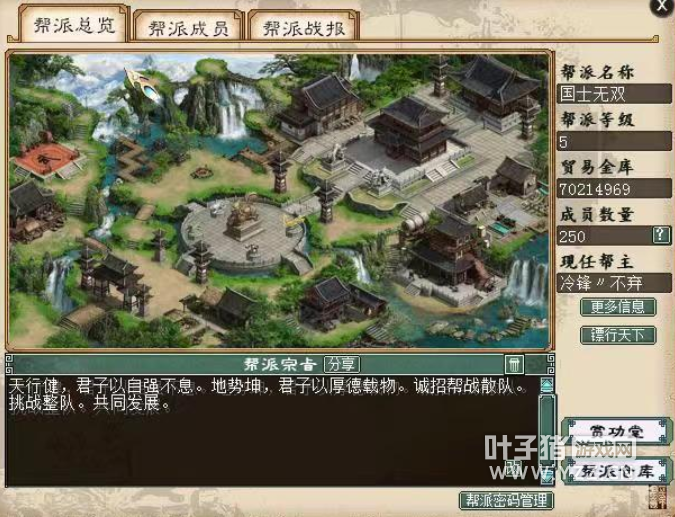 做帮主是个苦差事,需要在意每一位帮派成员,尽全力协调大家和睦相处。尽管费心费力,但习惯了之后,也就成为了一种乐趣。平时多上上号,多看看帮派群,看大家帮派群聊天,微信群互相开玩笑什么的,也非常有意思。 刚开始做帮主的时候,我就是一个小白,什么都不会弄。多亏兄弟们一起出谋划策,你一嘴他一嘴,时间一长,也还算发展得有模有样,毕竟也是老玩家了,接触了解东西比较快,很容易上手。就算偶尔被兄弟吐槽,大家也是当成个乐子,没有谁会真的在意,这样的帮派,气氛方面真是很不错的! 当时接手帮派,也是因为认识了张鑫帮主,张鑫帮主现实确实有些忙,我们的人又比较多,从风华移民过来的许多老玩家,就跟张鑫帮主商量接手了国士。当时接手的国士也是排名服务器第二,还是有点压力的,人多想保住排名都很难。但是顺其自然吧,玩游戏毕竟为了开心。