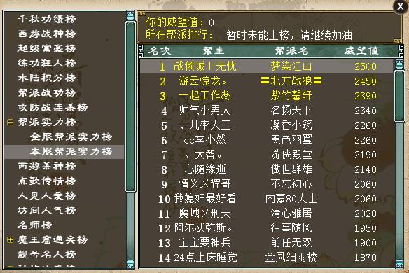 至于彰显一个帮派实力的帮战方面,我们梦染江山也一直算是比较给力了,帮众们也很团结,始终保持在本服第一,跨服的话,遇到实力强大的那也是没办法,只能继续努力啦!
