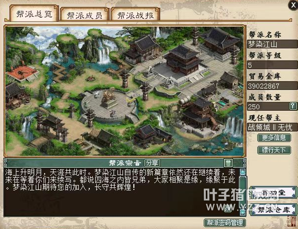 为了梦染江山帮派能一直保持风华正茂区内的第一,我可谓是鞠躬尽瘁呕心沥血,每天到处拉人,拉挑战队伍。之后或许是觉得我做的不错,“淡定哥”索性将帮主之位完全转给了我,到现在,我已经管理了梦染江山四年了。 能输不能退 有原则且贴心 风华正茂还处于在四下服务器时,有个帮派实力跟梦染江山不相上下,那段时间压力特别大,或许是命比较好吧,在我们第一帮派即将位置不保的时候,来了两个非常强大的挑战队伍,一下就帮我们稳住了位置,在这里要特别感谢久夏的血队和敏队加盟,才帮我们全帮度过难关!