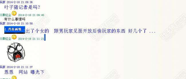 注:本篇文章涉及的人物及事件如有损玩家个人形象或者个人声誉,还请第一时间到论坛申请处理。以下内容并不大表叶子猪公司以及叶子猪编辑部认同! >>推荐阅读:第八届比武大会决赛:石头蛋蛋绝杀品茗 昨天晚上丹青玩家加红尘QQ反应其区里出现玩家现实见面后钱包被盗事件,对于这件事,因为昨天晚上当事人之一的糖果关掉好友,红尘无法与其取得联系。本来红尘是想:既然主角不开信,那我们不报道就得了,无须关心。但是该服务的玩家却对红尘说道这个件事情应该要报道。该名玩家继续说道:如果是真的那就是给广大见面的玩家提个醒,如果是假的那也说明这个人是诬陷的人。糖果也应该出面澄清一下!在玩家的再三要求之下,红尘才将此篇幅发出。 注 :此图均为玩家提供,如此事有误,请当事人速与我联系,便于澄清!(感谢大家的关注) |