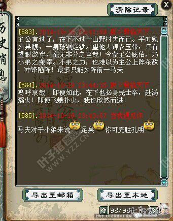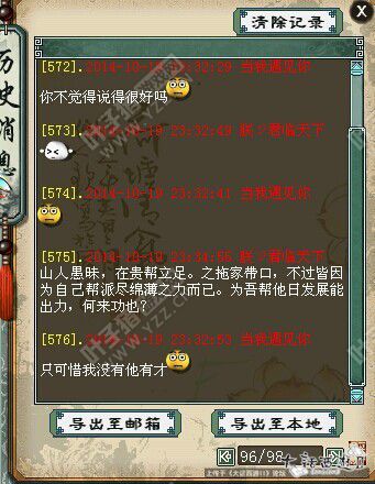 某玩家携家族换帮后,不恋权势,如同穿越回三国被孔明附身一般,通篇古文私密帮主请辞。帮主不禁被其才华所倾倒,极力挽留其协助管理帮派。 这么奇怪的要求,我这辈子都没见过! 聊天截图1 亲,你这么有才,你家主公都被惊呆了,有木有? 聊天截图2