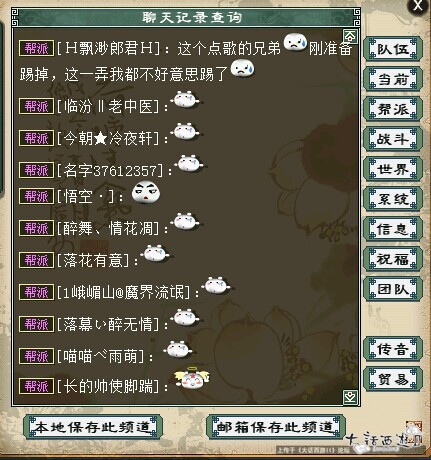由于帮派人员没有达到出勤率,所以飘渺准备T了他,但是这位机智的朋友,立马点了一首歌送帮派结果就,另送上赏功堂抽奖截图。 |