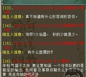 主人公修罗队伍有个4阶仙器的仙,一位小女魔不吃F,于是就引发了一下的口角。 >>推荐阅读:大话西游2真正万金油女魔 带五破武器一样能抽上限 其实吧 ,我也被搞懵了,不知道这位3转148的小女魔为什么那么生气,个人觉得这位炮哥秒7w狂暴11w已经不少了,足够修罗使用,咱也就是个平民队,没必要对人家要求太多,有在那啰嗦的喊人那会儿时间已经修了好几次了。这位小女魔只能抽一次,还得拿宝宝拉法.....结果让他吃个符把他惹到了,也不知道是我年轻还是他不懂事。
