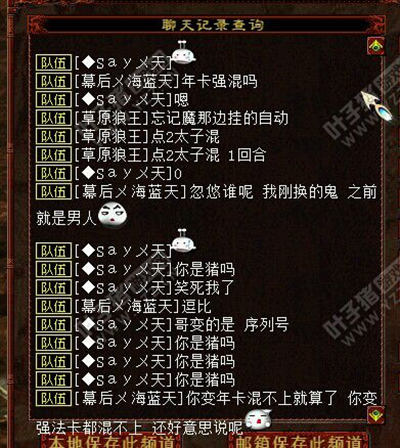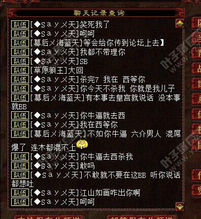 杀塔几乎成为了大话的“日常任务”。大家都是经常甚至天天去杀塔。 但有位朋友却遇到很无语的是,大家看看是什么问题呢。 (转自贴吧)作者杀塔混队,碰上一个男人。觉得十分奇葩。塔三杀小怪混两个,人家队长不说啥,作者也懒得说,平时都是瞎混队,随便杀杀都能过。 这个男人变个年的形象,因为昨天水路作者以为他是冰人变的强冰卡还没换,杀塔三BOSS的 混了1个,大家都没说话,他自己来个了井35, 然后作者就问了一句:年卡强混吗? 他说强,然后就出现了以下的聊天记录截图了, 大家看看自己看吧,从队伍第一句话开始截的图,大家谁也没说他混垃圾,他自己倒是沉不住气了。塔四木没混上,本来四回合能搞定的,搞了8回合!