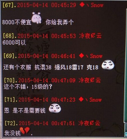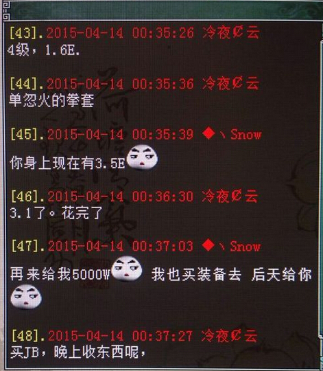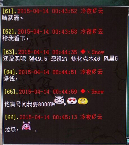 揭露一个琼树芳华的骗子,大家一起来看看,什么时候都不能掉以轻心啦! 事情经过是这样的,当时看到世界有人喊帮跑300,我就绑好电脑给他说帮我跑。因为绑好电脑,我也不怕他拿我东西。 结果...拿我的号已经骗我朋友5000W,还要再骗。让我真的很生气!果断的通知他们帮主! 叔可忍婶婶不能忍,这种骗子果断曝光! 希望大家注意,自己的号还是不要轻易给别人的好,任务难做就慢慢做呗,游戏怎么玩都是玩咯! <<<点击进入大话西游2论坛讨论>>> [编辑:韦小贝]