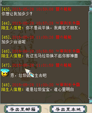 这位玩家拥有一只绝版的飞鱼神兽,他想换一匹龙马,说实话,成品龙马的价格和这种绝版神兽的价格差不了多少,但接下来的事却让他大为恼火... 一起来看看是什么样的时间,这只飞鱼和龙马,在您的区里价格相差几何呢? >>推荐阅读:新一周热门囧事合集 新一周热门囧事合集 大话能救命三百个老婆 不禁想想,现在带龙马的,到底是什么素质... <<<点击进入大话西游2论坛讨论>>> [编辑:韦小贝]