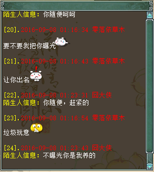 事情发生在流霞古泉,玩家嘎青菜在世界上收15级女魔抗仙法帽子,对方M他,然后就发生了以下的事情。 这是不是骗子?皇宫骗钱的?,大家看看评评理。 |