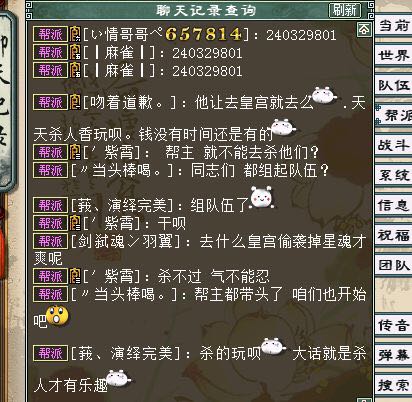 对话记录 对话记录 以下是明义帮派内聊天记录,帮主夏沫沫。号召吹起了“战斗的号角”: 明义帮派内聊天记录