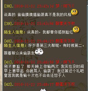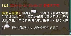 前段时间曝光了明星服务器剑烛沧海的撕逼事件,其中牵扯到区内的两大帮派,全民偶像石头蛋蛋也无辜躺枪。如今有玩家爆料事件的起因,一起来看看。 事件起因的主人公之一:醉掌天下权,来自明义帮派,涉及的另一帮派为晓风残月帮派。他趁夜里挑衅晓风残月帮主梦阿飞,让他组队皇宫PK;等到对方好不容易组好了队伍(由于时间较晚)他却... 究竟具体何事?吃瓜群众们搬好小板凳看热闹了。 主人公之一 以下是俩人的对话记录,从中我们能够明白这或许是事件的起因:无故挑衅,后玩失踪。 对话记录 对话记录对话记录 对话记录 对话记录 对话记录 对话记录 对话记录 对话记录