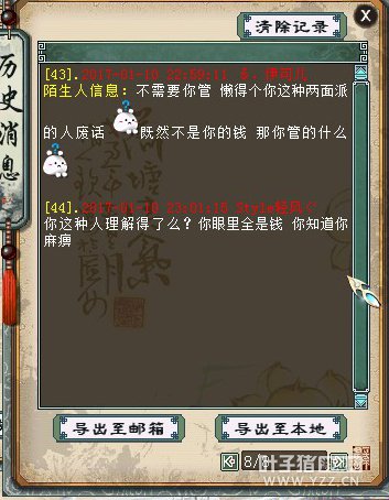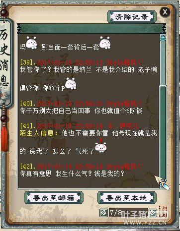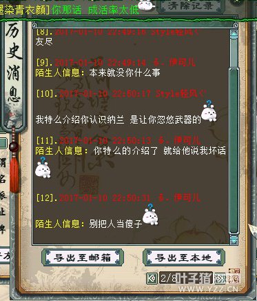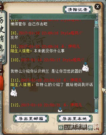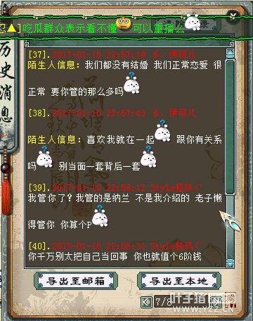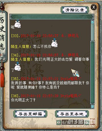 因为三年前吧,我和她偶然认识, 后来也没什么长时间接触。直到到了月光,她说让我给她介绍老公。我就把我朋友,一个6阶炮介绍给她了。 然后,男主跟我说他俩相爱了。刚开始我是高兴的,如果能成算是我做了一件善事。慢慢的性质变了,她管男主要东西,要5阶雷法环,说是想玩仙。 我那朋友也是实在,直接说5的不好,6的保值。然后,就用小号在再爱一次点了把6阶环,她自己上小号迫不及待地交易了。 中间我说过我朋友,毕竟钱不少,慎重考虑,结果还是这样了。我也听说那女的名声不好,跟我朋友说了。 后来不知道因为什么原因,武器被追回了,说是涉嫌盗号(武器是阁子点的,在小号上放着了,女主跟男主不是一个IP,女主上的号交易的,应该可以追回)。 她查IP就开始怀疑我和男主的一个朋友,说以前那人就看她不爽,骂过她。 结果不知道谁把这话传到那个朋友那了,我那朋友气不过就要刷她,去月光建了小号刷了不少骂了不少。我劝我朋友顾及我和男主的面子,还是不刷了。 这事,也就告一段落了。 今天,这娘们找我事,说我两面三刀,意思是我挑拨离间。很好,不是想红么?我就让你红到底。废话不说,上图。 以下是双方聊天记录截图: 简单来说,就是凯撒出于情义维护朋友,责怪女主向男主要六阶武器;女主反过来认为凯撒暗地在男主勉强说她坏话,“两面插刀”,破坏他们之间的感情。 聊天记录聊天记录 聊天记录 聊天记录 聊天记录 聊天记录 聊天记录 聊天记录 聊天记录 聊天记录 聊天记录 聊天记录