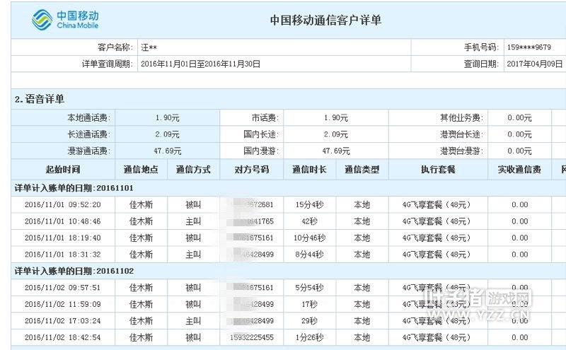 婉颜:这件事必须澄清,我还没有结婚,要是已婚了也不会出来纠正这些问题,我现在出面解释这个,是因为我很多高中同学都还在玩这个游戏,大家会想我出去上了这么多年大学,回来竟然变成一个如此不堪的人。我不能默认这件事让大家继续误会。 记者小爱:你有联系过大叔详细问问吗,毕竟他是当事人,他会为你出来澄清吗? 婉颜:没有联系过了,你觉得他会为了一个曾经的游戏媳妇,得罪好不容易追回来的对象吗?也许过去会,但是现在能抛弃妻子的他肯定不会。 记者小爱:现在有很多人都在议论这件事,并不是所有的留言都止于智者,你所相信的清者自清在如今的游戏氛围里并不存在,对于那些你不愿意曝光的聊天证据,可以马赛克,你考虑好了吗? 婉颜:谢谢你的提醒,不过我还是相信大家都不是傻子。我也不指望所有人都能够理解,只是我再不出来陈述事实,我真的没有安静的日子过了。每天熟悉的不熟悉的都要和我聊聊这个事,不过还是谢谢他们的关心。我不想辜负信任我的人,更不想他们卷进来为难。还有一件事,可能大家都不知道的,乱世的人人品都过关的,肯定不会嚼舌根,但是我觉得这件事可能是下一个黑我的方向,我保留,如果事情持续发展,我会再次说明。最后我想说,他们之间的对与错,是他们之间的恩怨,我不想参与其中,也不想去评价谁是谁非,大家心里都有一杆秤,我只把我的事情说清楚,希望他们以后别再牵扯我和一些无辜的人。最后,我附上一些手机的通话记录吧,只能找到最近半年的,也就是11月份的,就是他离婚以后跟娃娃在一起的时间,我们并没有联系: 婉颜打印的通话单