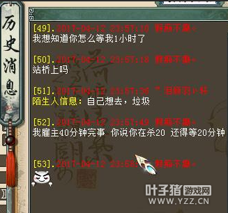大家来帮我评评理,我想买队过悟法却被骂“垃圾”,难道现在卖身的反而成了大爷? 服务器:百鸟朝凤 买队杀悟法,前面的不多说。组完我等了半天,他告诉我让我先去5环,杀不了。后来我就去孤竹了,给他说出来再杀。孤竹完了,M他,他说在杀20称,得等20分钟。我就没等他,另找了个队。结果这货来了句:“孤竹等了你1小时,垃圾就是垃圾”?我也真是服了。 来看对话记录图。 大家来评评理,到底这是谁的问题? <<<点击进入大话西游2论坛讨论>>> [编辑:wei]