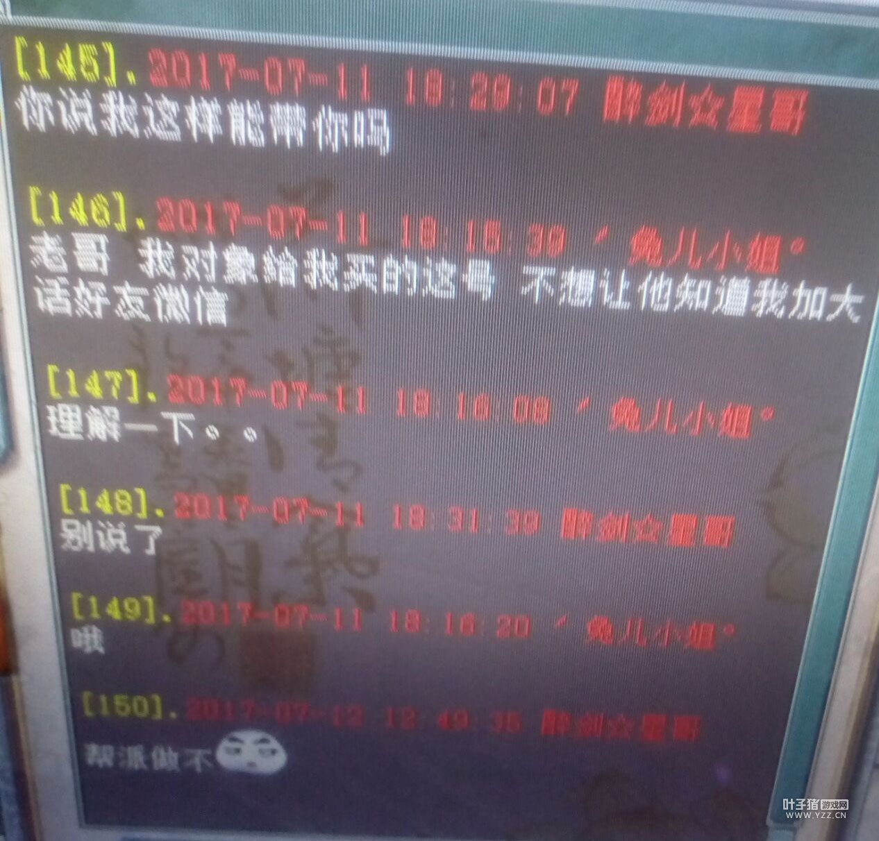 我是大话西游2莫愁湖女玩家兔儿小姐,心里好多委屈,前来叶子猪倾诉下我的遭遇 大话中女玩家想自己玩,可是一个人的能力有限,我想着让别人带14星和穷奇,于是与对方人家结婚,我没有向对方要过一分钱,我难道有错了? 希望好心人帮帮我别再让对方缠着我,补充一下,之前他也找我借过钱,不过还了。 下面是兔儿小姐的游戏遭遇: 莫愁湖兔儿小姐与酔剑星哥的恩怨始末
