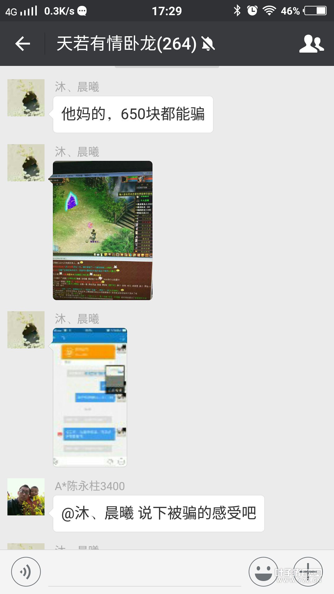 大家好!我是天若有情的战且试天下,今天给大家带来的是,真假隔壁老王之一人被骗二人受害者。 关于线下交易的问题,官方和叶子猪都是不停的呼吁大家别线下交易,可总是不断的有人反映被骗了。线下交易风险挺大的。被骗一点办法都没有。今天讲的又是线下被骗的,一人被骗,二人受害者。 8月21号的时候,微信群里有个美女玩家在说,被一个叫隔壁老王的人被了650块钱。然后大家就在讨论关于线下的问题。说那个人骗了好多人,如下图: |