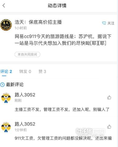 浩天的CC911公会拖欠了主播工资大概10多万,像新主播3个月至少,老主播时间可能更长,而浩天都是工资准时打给了公会的二把手情殇,情殇却一直拖欠,为此主播们联系网易讨公道。 一个主播直接发大招对911公会进行讨伐