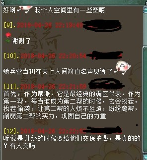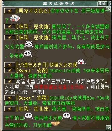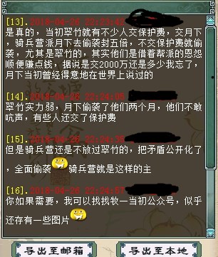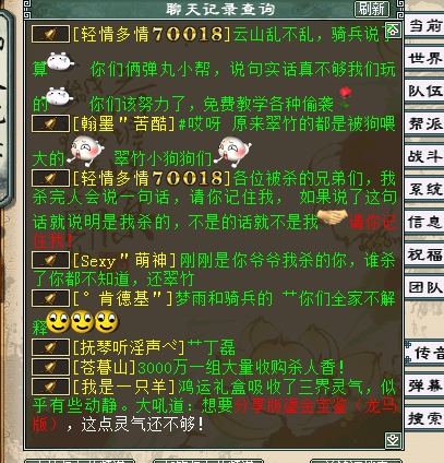 此文为玩家个人观点,不代表叶子猪游戏网立场。 近日小编收到投稿,阐述了云山梦忆服务器自合服后,区里偷袭不断,乱作一团,死伤无数,到底是为何,我们一起来看看, 很久没有写些什么,大话号也只不过偶尔上来看看,剩下的也都只是回忆,但是今天上号看到的一些事情,却让我突然觉得我该写点什么。 导读:大话西游2一款16年的游戏,陪伴了一代人的成长,也承载了我们很多回忆!如果有一天你打开游戏发现已经不再是我们认识的那个游戏了,想去升级打怪,却发现你需要交了费才能正常游戏,当你跑个五环都要去小白喝个茶的时候,当你的帮派实力全服务器第一,你就要受到第二帮派毫无理由的偷袭的时候,你还会爱这款游戏吗? 这些事情仿佛都像在说个别人的故事,但是确都发生在2017年12月28日刚合区的云山梦忆服务器,到底是怎么样的情况,首先我们先看两篇早期的报道,了解下事件发生的背景: 想去比武却惨受挤压 新规则居然如此利用 http://xy2.yzz.cn/forum/201609/1015685_all.shtml 云山梦忆合区天翻地覆 两大帮派血战不休 http://bbs.yzz.cn/thread-6006113-1-1.html 再来看几张铃铛的图片: 下边这张图应该就是本次云山梦忆全区偷袭乱战的起因了— 做为云山梦忆一名普通的玩家,现在事件还有愈演愈烈的趋势,也严重影响到了我们玩家的游戏体验,那么骑兵营为什么要丧心病狂的偷袭区里玩家呢,这就要从骑兵营的历史说起,今天一位玩家对骑兵营做了个简单的介绍,大家直接看记录: 对于本次偷袭的事件的起因有两个版本: 我们先看第一个版本: 轻情多情说他被骗了,所以要离帮杀梦雨帮众,那么所谓被骗是什么呢? 经过多方了解是轻情多情在集市摊位买了一把11级的装备花费了450万,他觉得卖家故意摆高价骗他,所以就说被骗,而此卖家非梦雨帮众,为了跟梦雨扯上关系只能说此号是梦雨帮众开的并以此理由偷袭梦雨。上演了一出兄弟反目的大戏,但是当骑兵营玩家发出帮派聊天截图曝光轻情多情偷袭的真实目的以后就上演了这出,大家自己脑补。 我们再来看第二个版本: 那么综合以上图片,我想各位玩家也都明白是怎么个故事了,骑兵营不甘每周帮战在输给梦雨的同时,也要承担输给翠竹的风险,所以铤而走险偷袭梦雨,但是没有想到的是遇到了梦雨的各种反击,同时骑兵营将矛头又一直指向了翠竹和其他帮派,根据不完全统计,现在已经有三到四个帮参与到这场偷袭中来。我想大家的想法都是你不让我们好好升级,那么大家就都不要好好升级,而在这种情况下骑兵营请来的外援也开始在世界各种叫嚣,因为在偷袭这个行业里,骑兵营才是真正专业的偷袭。 本次偷袭双方帮派各有死伤,同时也殃及了很多无辜玩家,偷袭死的图片我也就不发了篇幅有限,能发的图片也有限,最后放一场,4个化无VS40个化 无(神家族为骑兵营请来的外援)的战斗以供大家欣赏,现在区里偷袭还在继续,阎王打架,小鬼遭殃,真的希望这场偷袭早日结束! wrecord-18-04-20-22-19-11.wrec (4化VS40化) [编辑:宁财神]