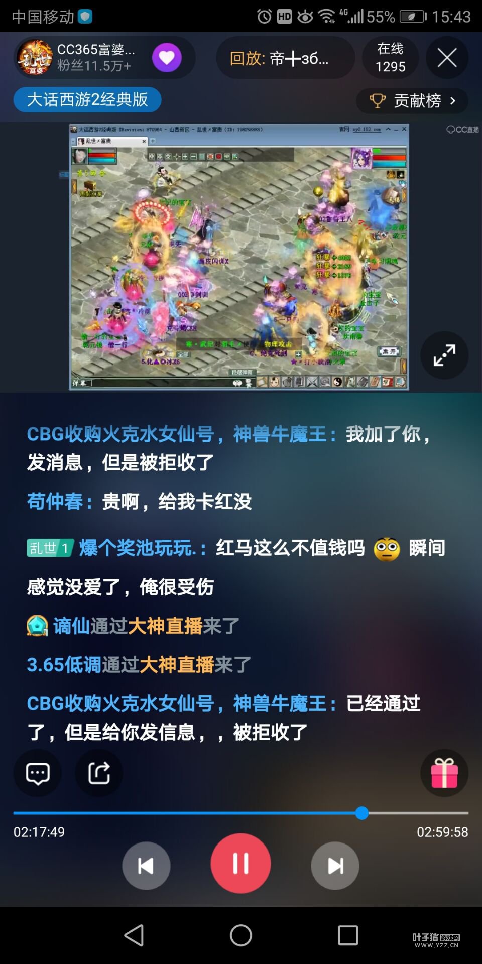 昨天晚上也就是2018年12.16号晚上,我在大话西游2CC富婆直播间观看天梯比赛,富婆说要过任务就整了2个400元红包,让刷老司机就可以中奖,然后我中奖了。 当时出了个插曲,系统卡了,马上出奖的一分钟很多人刷礼物都卡了,最后奖励爆出来别人刷的礼物才显示出来,没想到富婆不算数不给我奖励了。 最后直播间很多玩家说得给,富婆才说给我,接着让我加他微信v3099999,我微信加了很多次都显示不了,最后他加我,我通过了。 微信通过之后我就给他发信息,显示被拒收了,富婆讲我不给他微信说话,说我不通过他的好友,还说我骗子,不给我奖励 我反问他是不是设置了什么,富婆来句我的微信在他黑名单,我是不是之前骗了他所以他把我拉黑过? 我之前都没他微信好友,至于怎么在他黑名单,那不就是他不想给直接加我好友之后瞬间拉黑我??? 富婆却一口咬定我之前肯定骗过他,然后他就说我之前骗了他,不给我红包了,还说我的CC号没有刷礼物怎么是他直播间红马?说我骗他。 实际上红马还是他之前自己给我上的,当时在聊天,富婆说我说得对,然后给我上了个免费红马,现在是闹哪样? 下面提供部分截图:(富婆在CC频道的言论没录制,没经验) 中奖纪录,说好了400元红包2个