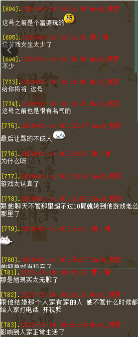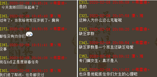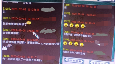 今天,给大家曝光一个专门拿女玩家下手的骗子,据悉把酒言欢服务器不少女玩家已上当,不止游戏财产的损失,甚至有的女玩家裸照被骗子曝光了,看完会颠覆你的三观。 一.女玩家裸照被曝光 (由于照片非常不雅,小黑进行图片马赛克) 在微信群发女玩家裸照的这个骗子,在游戏原名Her0_残梦,是个女仙号,不过号好像卖了,他刚换了一个男仙号,如下图: 女仙号已改名,好像是卖了,他现在买了这个男仙号 男仙号原主人提供的卖号截图,现在号就是骗子Her0_残梦在使用了。 这个是被曝光裸照的女玩家游戏资料,因为她也是受害人,相关游戏资料进行马赛克处理。由于裸照被曝光,她微信举报Her0_残梦,据Her0_残梦自己说微信被封了。 = 因为裸照被曝光,不少认识女玩家的玩家都看到了,也有微信问她的。考虑头像涉及到真人照,也进行马赛克。 女玩家裸照被Her0_残梦曝光,Her0_残梦引以为傲,因为,这并不是他第一次干这种事了,看下图: 可能有玩家会提出疑问,就算曝光了女玩家裸照怎么就成骗子了?最多是感情欺骗,渣男一个!那么我们继续看下面! 二.女玩家物资被骗走 这名受害女玩家叫做潇湘,被Her0_残梦骗走了灵宝装备 其实从聊天数字来看,两个人的关系应该不错,不然潇湘不会钱没收到就把灵宝和装备给Her0_残梦了,不过结果可想而知。 原来Her0_残梦这个号也并不是骗子本人的,号本身也是个女玩家,Her0_残梦欺骗了她,号80元指定就成骗子的了。相信在欺诈这一块,Her0_残梦已经做得炉火纯青了。截图中有女玩家曝光,大概意思是说他肯定是胁迫或者哄骗另一个女玩家把号80元指定给了他,最后这个号被他6200元卖掉了。 以下是Her0_残梦讲述原号主人的故事: 【尾声】 关于Her0_残梦这个专门以女玩家进行下手的骗子,很有必要曝光,同时也告诫女玩家们要好好保护自己,不要随便把照片发送给网络陌生人,也许屏幕对面就是一条狗呢! [编辑:流萤]