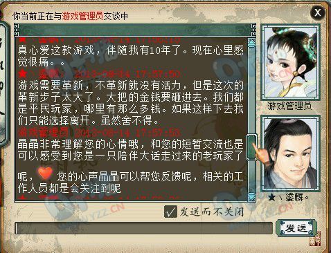 推荐阅读:新大话西游2:盘点昨日各服神兽年得主 就“在爱一次”,关于爱不爱的问题在下与GM做了彻底的交流,也希望通过此段对话,让玩家了解的官方的态度。 815生日快乐,我最初的那份爱~! 就在刚才,我实在忍不住心中的伤痛,打开游戏联系到了GM妹子,这位客服妹子叫晶晶,现在我已热泪盈眶,接下来已经话到嘴边有落下,那么既然这样,那我话不多说,直接上图,为苦逼的大话玩家呈现一丝温暖。 815大话第十一个年头,让我等屌丝为你送上一份最诚挚的祝福,生日快乐。 |