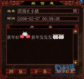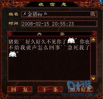猪姐,你回来吖!来看看大家的祝福吖! 回来啊!!! 更多游戏资讯请访问叶子猪游戏资讯中心:http://news.yzz.cn/ |