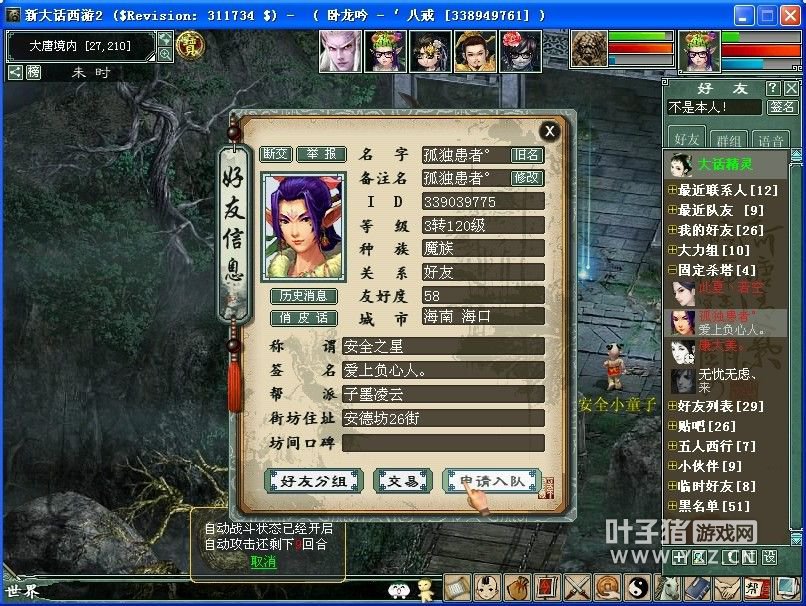 酒醒之后随便点了一下,大话2 新区卧龙吟,发现竟然只排队400多,果断就等之,2年不玩大话了,但是不知道为什么客户端还莫名的留着,别的游戏都是不玩时候就删了,运气还真好,为什么发现一个81级鬼不去升级做任务,而莫名其妙带小号呢... 不多说,很幸福!那个女魔八戒是我。 我的重回大话之旅就这样开始了,那么我就来和大家一起分享八戒成长的点点滴滴。 >>推荐阅读:大话老照片:不认识的你敢说自己是老玩家? ![]() 记录点滴2、酒醒之后随便点了一下,大话2 新区卧龙吟,发现竟然只排队400多,果断就等之,2年不玩大话了,但是客户端还莫名的留着,别的游戏都是不玩时候就删了,还有为什么发现一个81级鬼不去升级做任务,而莫名其妙带小号呢... 不多说,很幸福!那个女魔八戒是我.. ![]() 记录点滴8、78级了和一个路人互杀了7和8,上班族冲新区还是压力山大啊, 多亏这区有些鬼,根本都不用排队的有木有,表哥也很无敌7天开了3个区,有2个元旦区,不过这区蛮适合上班族,还算是新区而且还不用排队的,相当哇塞有木有。 记录点滴147、这是不是很漂亮哟。给大话赞一个,觉得这个安全任务还是不错的,经验不错。目前没看见吐槽的说。#e# ![]() 记录点滴157、这个就是八戒的最新动态了,一直在比较勤奋的升级,目标就是140!终于进入倒计时啦!!估计3天就到了吧。这一段时间一直辛苦朋友咯,自己上线时间有限,就叫朋友帮忙升级。不多说,等我得了 神兽,一人分你们一个高级飞行棋!! ![]() 记录点滴189、想必看过我帖子的人都知道我那头泥巴吧?从0级带到3转140级,3开格子,神功鬼力是花钱买的书。带到3转140都特么没领悟一个低分,人家信土,高分,分化,我看我哪个朋友泥巴都有!然后我开始吐槽,决定要把名字改成...马上有低分后来戏剧性的一幕看下一页。 ![]() 记录点滴196、我们帮今儿发福利,若冰 各种放仙器,补天,还有六魂啊。哥抽到了最贵的筋骨,估计900W,我们帮人只要有人开头调侃我,那好吧,估计半天都是埋汰我的话题,可能是哥太低调,一直都木有反抗#75 ![]() 记录点滴197、这是明天的福利,还有土豪若冰的图图,以前这个帮是我师傅的,内货后来不玩了 !就交给若冰了,管理的挺好的, 有3转高等级玩家可以来哦,直接联系若冰 就说八戒介绍来的哟。那个枯骨刀会不会是我的#118 ![]() 记录点滴198、前面可能介绍过这个小伙伴,是我的同事,姓孙,现实里我们给他的外号就是齐天大圣,今天我们喝了一天的酒,都是别人请我们-0-貌似喝了一斤多啊 中午喝晚上喝。可能是酒精上头了 这货竟然今天土豪了一下,看下图。 ![]() 记录点滴206、楼主终于150了,是不是很慢哟,每天都不升级的,就把安全月做了#109功绩也正好到2600 升级了护身符,收了好几天的加成链子也木有人M我,等收到链子之后我再给吧友们看属性吧,现在太坑了。 持续更新中... <<<点击进入大话西游2论坛讨论>>> [编辑:小虎]