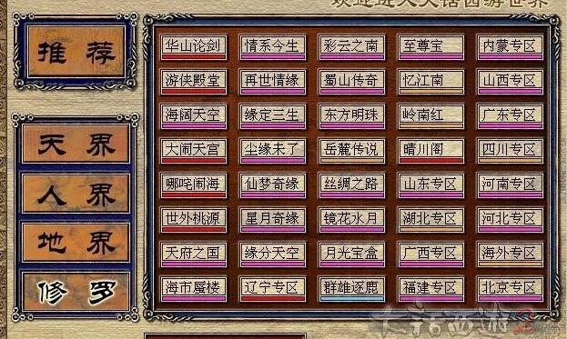 这是目前大话服务器,目前仅有的两个原始服务器名,或者说西游记元素的服务器名“水晶宫”、“碧波潭”。 说说我的故事,楼主第一个玩的服务器,是地界-积雷山,网吧里面几位大神,玩的是地界-云栈洞,当时就对这些服务器名很感兴趣,也去看了西游记的书,才知道,地界的这些服务器,基本都是妖怪居住的山头洞天,西游记中, 天地有四大部洲分为”东胜神州“”西贺牛洲“”南瞻部洲“”北俱芦洲“,无数的山、洞天福地。全都成了大话的服务器名,很有意思。举个栗子: 福陵山云栈洞(猪八戒) 花果山水帘洞(孙悟空) 积雷山摩洞(牛魔王偷养的玉面狐狸) 陷空山无底洞(老鼠精) 乱石山碧波潭(九头驸马) 方寸山菩提老儿的后山上,到现在还写着”灵台方寸山,斜月三星洞“十个大字呢。。 仅有的两组服务器名,希望能留下来了,水晶宫正在合区,求投票的人多投水晶宫的名字,让他留下来吧。