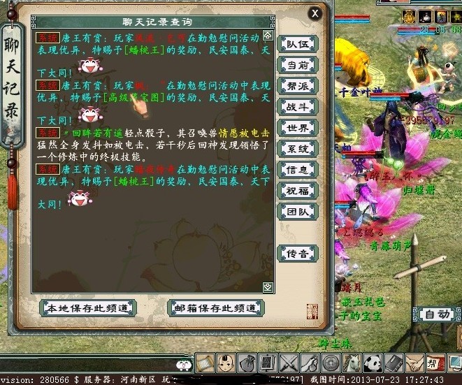 推荐阅读:天气热火气大:纵观大话2巡游天官降温 几率年年有,今年特别多,又是一组养眼的几率精彩瞬间,为你一一呈上了,虽说本周维护预览爆料的的惠民福利让玩家们很是欢喜,但是说句不怕得罪大家的话,不如以下单个的玩家“福利”来的优厚,你若不信,那么跟我一起来看一看吧。 图文大杂汇第21期----内容简要: 一:龙门水将被电击,又为绝版终极守护再填一例,玩家纷纷表示:“如此龙门,肯定能卖个好价钱。 二:如此清一色的地宫随机奖励,简直是个“坑”,OS梦何时成真。 三:人品+运气固然重要,但看了这张图有感而发,召唤兽起对名字也很重要。 四:看一看玩家的豪华庭院,屋内家具摆放整齐有序,庭院植物茂盛,但重点在于大资金的装饰。 五:其他热点图片。 (小资讯一样精彩~!)