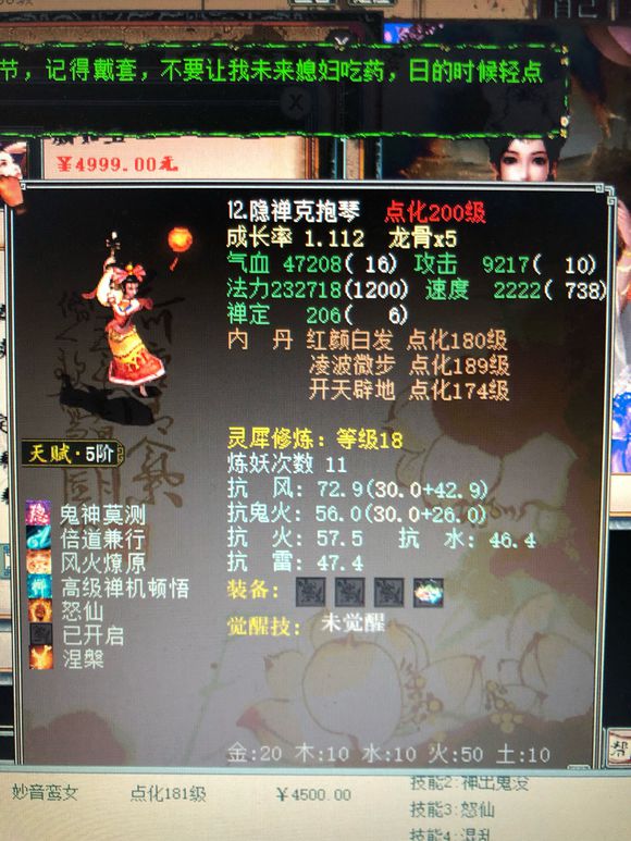 此人三个宝宝要换我的五介忽视混,200级乱女30灵希20级五星法力,57颜如玉,大隐小妖,大家看看谁还要加钱不? [编辑:韦小贝]