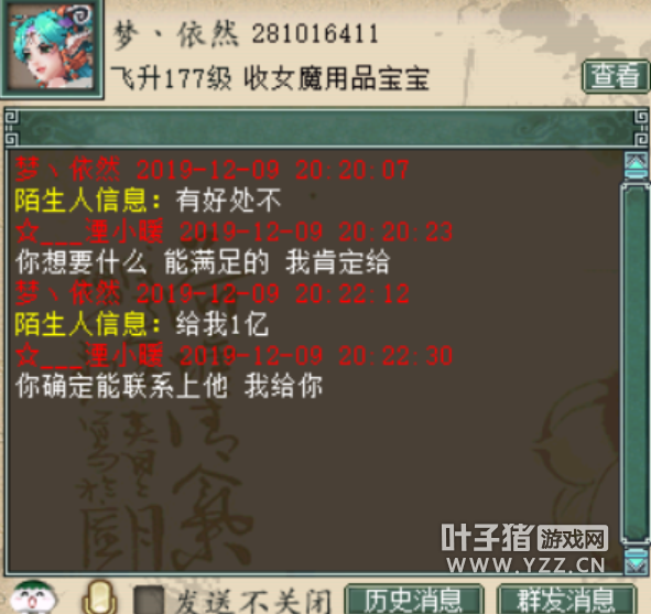 这是起因,然后就开始各种私聊摊位主人,也寻求好友帮忙一起找他这个人,希望他能够还给我,虽然说很不现实吧,也有商量的余地,或者是我花钱收回来也可以,或者给他点好处。