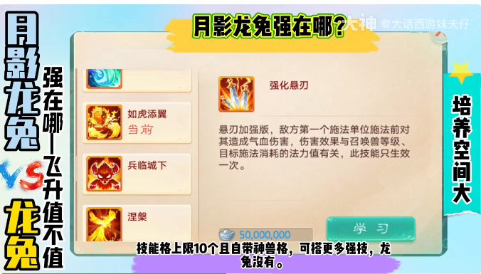 大话西游手游月影龙兔VS龙兔:技能强在哪?飞升值不值?