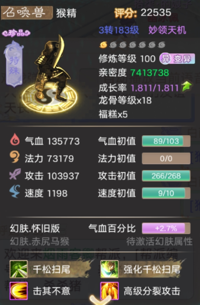 大话西游手游牛图展示:千敏猴10万血10万攻,算什么水平?
