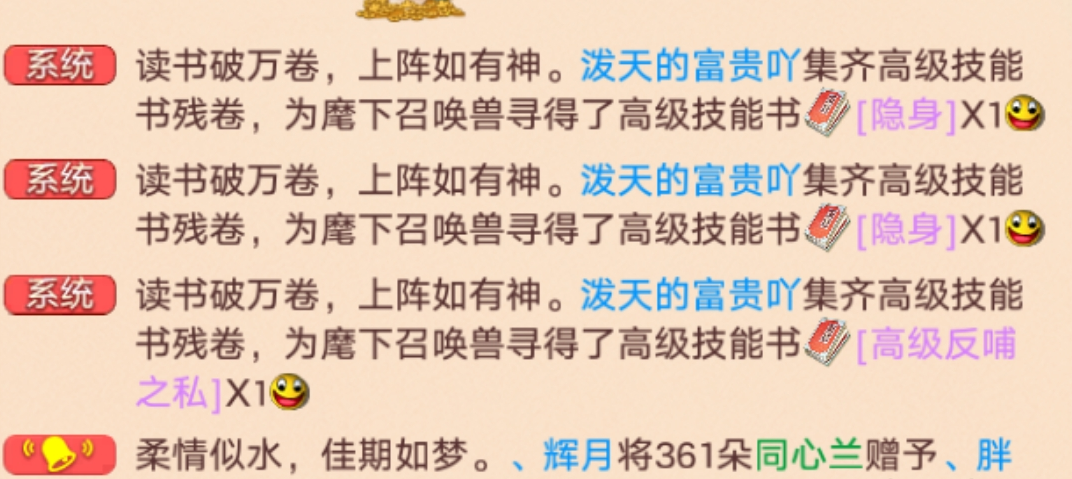 大话牛图最新一期内容导读: 1、这真的只是随手一练吗?属性不错啊! 2、八骏争春好活动,真能开一级书 3、三本高级技能书,两本隐身 4、用了6张藏宝图,挖出两本见闻! 这真的只是随手一练吗?属性不错啊!(分享人:小柒) 八骏争春好活动,真能开一级书(晒图人:判官) 三本高级技能书,两本隐身(晒图人:郝) 用了6张藏宝图,挖出两本见闻!(晒图人:冷冷吉落细雨) [编辑:ssc]