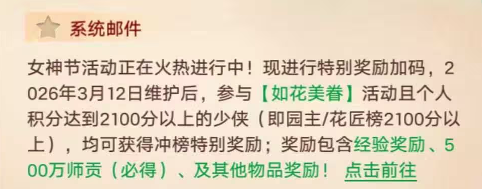 晒图人: 这就破防了吗? 杀星竞赛没抢到星,还给了见闻! 杀星竞赛重在参与!没抢到星还给了见闻!大话令配饰打造任务又一次给了无价! 晒图人: 尘缘有你剑 又来补偿了? 如花美眷不管你是园主还是花匠,积分只要够2100以上,就给500万师贡,还有神秘奖品,快来参加吧! 晒图人: 游戏玩家 灵猴子最多能到多少回合?我49回合 有权威人士吗?灵猴不跑的情况下,能打到多少回合?我的49回合求超越,其实还能继续的,但是投了个40万,寻思回点血,就搞死了。哎又是赔钱的一天!!! 晒图人: Giggxin 乘风破浪为啥这么贵? 同样是附法内丹,其他都1000万,只有乘风破浪要1亿?这是为什么呢? [编辑:ssc]