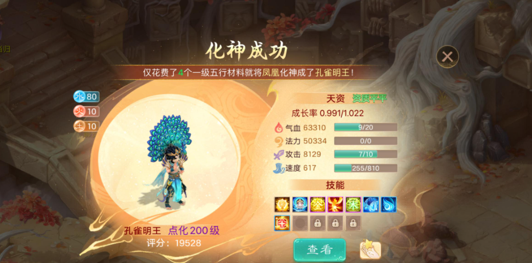 大话西游手游四本书孔雀明王化神成功,大家来说说这什么水平?
