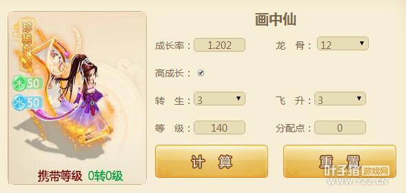 1.输入http://xy2.yzz.cn/sy/进入叶子猪大话手游专区,点击工具栏左侧的召唤兽模拟进入数据模拟界面。 3.选择输入各项属性:依次选择龙骨、是否高成长、转生、飞升(神兽)和手动输入想计算的等级,自由分配点会根据输入自动呈现。 选择各项属性