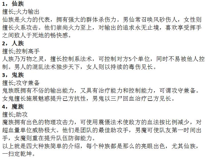 四大种族全介绍 四大种族全介绍 各种族法术修正 各种族法术对应位置 主流修正推荐 最强种族角色选择推荐 [编辑:叶子猪小秘书]