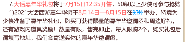 4.大话嘉年华8月14日-15日在郑州举办,小伙伴们可以提前购买门票,门票可以携带一位不超过1.2m的儿童哦。而且,还有机会抽取鎏金宝鉴兑换券和万元机酒礼包。