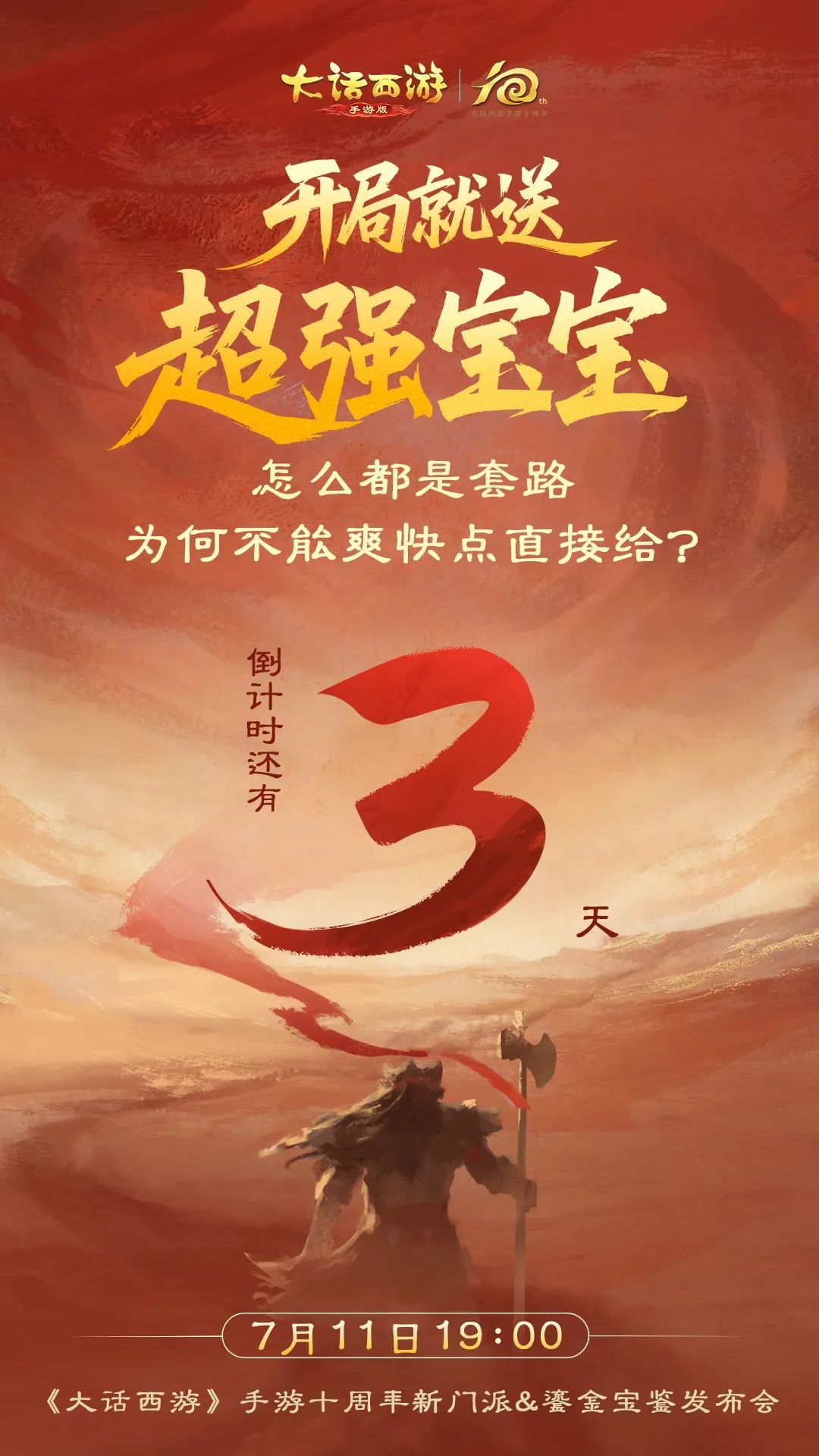 游戏圈内有一种路,叫做“开局就送xx”的套路。 点进去却发现,有着各式各样的领取门槛。铁蛋不禁发问—— 二十余年的回合制内容沉淀,少侠们想要什么样的“开局就送”我们懂! 至于新门派赠宝宝如何更“爽快”、更“直接”? 诚邀各位少侠,评论区分享你们的想法。铁蛋将从中抽取5位送出大话精美周边一份哦~ 最后暖心铁蛋再提醒各位少侠—— 发布会倒计时2天 新门派师门法术、上线时间、角色形象、背景故事全面公开!十周年限定版鎏金宝鉴首亮相! 这次0门槛,开局就送的“重磅福利”也一并揭晓~ [编辑:月光下完美]