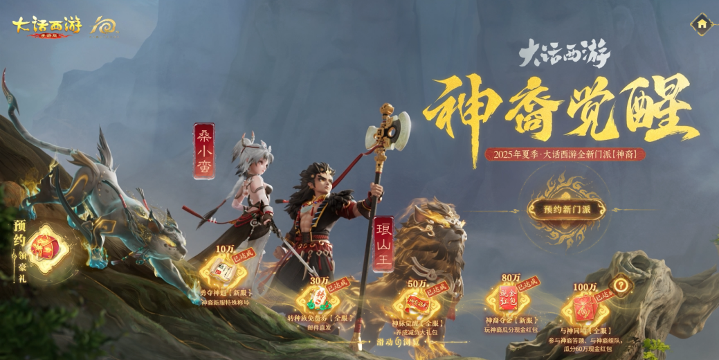 大话西游历史性时刻!全新门派“神裔”明日全服上线! 资料片同名超级大服【神裔觉醒】将同步开启!首个可创建神裔角色的新服,明日(周二)中午12:00准时开启! 十年大话,感恩相伴!6年前,龙族首发新服爆满,48小时紧急加开服务器。如今新门派“神裔”全网预约量突破百万!十年情义未落幕,百万少侠再集结! (当前已解锁百万现金红包大奖,参与预约的少侠记得明日登录游戏哦~) 【超级主题大服·神裔觉醒】 承载十周年新门派纪念意义,首个神裔超级主题大服【神裔觉醒】将永不改名! 还特设九大福利活动,助力少侠开启成神之路! 更多精彩内容,请看下方长图~ [编辑:叶子猪小秘书]