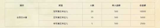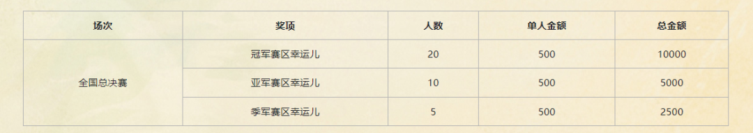 龙争虎斗破苍穹,威名三界耀群雄!《大话西游》手游2025年无差别挑战赛四大赛区冠军火热出炉,线下总决赛将于8月16日13:00在天津嘉年华现场(国家会展中心)正式打响! 江湖高手齐聚 无差别总决赛即将开战 经过一段时间的激烈角逐,青龙赛区【永不加班】战队、白虎赛区【队里有小河豚】战队、朱雀赛区【带小羊飞。】战队以及玄武赛区【神乎其神】战队力克群雄脱颖而出,成为分赛总冠军,成功拿下无差别总决赛的参赛资格! 四支战队将于8月16日13:00在天津嘉年华现场(国家会展中心),展开2025年无差别挑战赛的半决赛以及最终决赛,四圣冠军杯最终将花落谁家?让我们拭目以待! 2025年无差别挑战赛冠军战队,不仅将带走四圣冠军杯,还将获得10万元奖金,亚军将获得4万元奖金,季军将获得2万元奖金,更有专属称谓彰显各位的荣耀时刻! 直播间送好礼 最高500元红包等你赢 与此同时,游戏内及CC直播、抖音、视频号等平台将同步开启无差别线下总决赛的直播,欢迎侠士们共同见证冠军的诞生! 8月16日,全国半决赛/决赛期间,决出全国季军/冠军同时都会在对应赛区完成6轮海选赛的参赛选手中抽出幸运儿,送出500元的幸运现金红包!祝各位少侠观战好运! 8月16日13:00,《大话西游》手游2025年无差别挑战赛将在天津嘉年华现场(国家会展中心)迎来终极对决,让我们一同关注冠军的诞生,为战队呐喊加油! [编辑:月光下完美]
