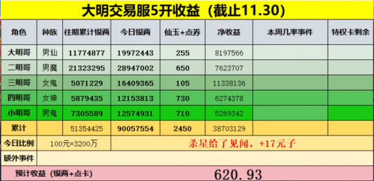 大话手游交易服常见五开搬砖阵容!半个月五开收益600元?
