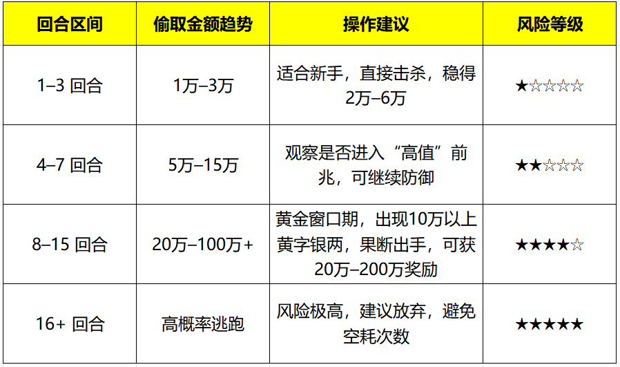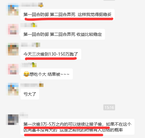 大话手游天降灵猴怎么玩?天降灵猴怎么稳赚不赔?大话手游交易服灵猴能偷到多少银两?每周一全天时间天降灵猴开启,在长安、万寿山、傲来国等,都能找到猴子偷到银两。 今天叶子猪群内玩家,纷纷讨论起了灵猴偷银两的套路,有人今天猴子三次偷到130-150万跑了,于是稳妥一些的朋友认为,第一回合防御,第二回合弄死,收益比较稳定,这也是大多数人目前尝试的一个方法,但是这样银两收益较低。 天降灵猴的银两收益遵循单一回合乘二原则,其核心计算公式为:单次收益=2×最后一回合灵猴偷取的银两金额。即使前10回合偷取500万,最后一回合仅偷1万,奖励仍为2万。 还有一种说法是,猴子偷取金额为随机波动,呈现“中–低–高”循环规律。如果第一次灵猴偷取区间在3万~5万之间,就可以继续让猴子偷,如果不是,那直接物理攻击或法术震慑将其击杀。 第三种玩家是属于胆子比较大的,他们认为猴子前面几次一般都跑,累计几次最多会被偷到累计200万,你别停,只要每次一旦出现偷了上百万,就直接打死。 如此反复,你起码会回本,有好几次都是被偷到20回合后,突然出现偷了200多万,我一棒子打死,然后就回本了....这是之前玩的时候有人总结的概率。 若连续两回合偷取金额相近(比如两次均为2.5万),说明灵猴即将进入“高值”或即将逃跑,建议在第3次出现3万以上时出手,该出手时就出手呀! 大话手游天降灵猴,虽然是属于“高波动、高回报”,但还是建议大家避免贪心:单次击杀收益超过100万即收手,后续灵猴逃跑率显著上升,不是每个人都能偷到1000万银两的。 叶子猪小编亲测,脸黑的玩家还是第一回合防御,第二回合击杀,想靠灵猴赚到100万银两不容易,高收益回合出现频率受服务器活跃度影响,部分新区或低活跃服收益偏低。 以上就是今天的所有内容,关于灵猴银两收益问题,如果你有其他不同见解,欢迎加入叶子猪大话手游交流群。收菜卖菜、自由交易、搬砖组队,可加入交易服。 [编辑:ssc]