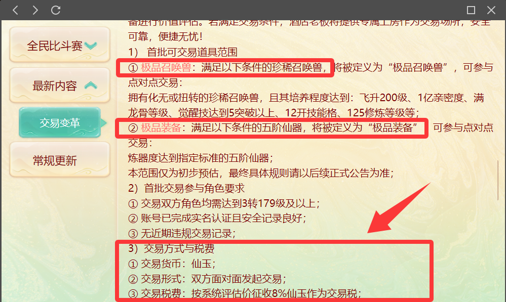大话西游手游交易变革,本周维护后全服开放面对面交易!大话手游为什么要开放全服自由交易?面对面交易全服开放意味着什么?下面叶子猪带来维护解读,搬砖的你一定要知道这几个重点信息! 一、自由交易落地:全面打破价格限制 大话买卖物资最重要的是什么?那肯定就是卖出好价钱了。大话官方这一手操作,相当于直接把“交易权”给到了玩家手里。所有玩家在同屏状态下,可以发起1对1当面交易,支持自由定价、任意填写价格,系统不再进行干预或审核。 虽然只能用仙玉进行交易,还要征收8%仙玉作为交易税,但玩过回合手游的都知道,大话手游这个玩法可比其他限制交易的手游好太多了,那些什么拍卖行、交易行,都是系统在顶价,你有好装备、好宝宝都卖不出价钱,砸在手里了。 现在大话手游在交易服试点之后,把“面对面交易”向更多服务器推广,标志着官方对“玩家主导经济”的全面认可,实实在在的仙玉拿在手里,用心打造的装备宝宝饰品有了实在的意义。 二、交易效率提升:交易完成即刻到账 这个也是非常重要的一个方面,摆摊寄售等公示期的过程,着急卖东西变现的朋友,应该能体会到这种痛苦。现在维护后,无需等待系统审核,交易完成后即刻到账,杜绝了传统摆摊模式中“延迟到账”、“被扣货”等风险。 官方首批开放点对点交易的仅限于: 极品召唤兽:飞升200级、1亿亲密度、满龙骨、5突破觉醒技等; 极品装备:五阶仙器,炼器度≥90% 大话官方开放的首批可交易道具,限制是极品召唤兽、极品装备,有些玩家认为,这样的话基本就是在为老板服务,对普通玩家没有什么意义。化无扭转召唤兽、五阶仙器,这些可不是人人都有的啊...... 话是这么说,但你有没有想过,官方为什么不全部开放呢?如果打破可交易道具范围,那就会导致一种局面:各大区、各大服务器经济陷入混乱,低价物品滥竽充数的物资,工作室乱标价进行倒卖仙玉。 这样的话,高价值东西不再成为大家唯一关注的,资产也不再保值,反而陷入了利用面对面交易进行倒卖仙玉的恶意循环,并不能提升高价值资产的流通效率。 三、扼制投机行为:引入“互斥期”机制 大话手游规定,摆摊与面对面交易互斥期为2年,点对点获得的道具2年内禁止摆摊,切割投机与价值流通路径。而成功通过面对面交易获得的道具,将进入48小时锁定期,期间不可再交易、分解或重铸,阻断“快进快出”的倒卖链条 。 这个也是为了扼制投机倒把的行为,防止工作室进场收割道具,让真正有需求的玩家,拥有合法安全的变现途径,玩家将真正掌握定价权与交易主导权。 当然啦,如果你觉得这样的“面对面交易”还是有太多限制了,那你完全可以入驻大话交易服自由搬砖,比如3月24日开服的【春华万卷】,那是真正没有任何限制的交易市场。 大话西游手游2026最新礼包码 【大话春日福利放送】 【大话手游发福利】 【春日福利】 【福利同行】 http://xy2.yzz.cn/sy/special/dl/ 《大话西游手游》分为免费畅玩服、时间点卡服、自由交易服三大服系,每一种服务器都有它存在的道理,有些人他就是喜欢在时间服、畅玩服养老,慢慢积累物资打造神器,不喜欢交易服这种快节奏的游戏搬砖环境。 萝卜青菜各有所爱,游戏嘛,自己玩得开心最重要了,目前叶子猪也开放了多个大话交易服&交流群,担保出银、看号估价、寄售回收,自由交易,没有任何限制。 如有需要其他交易群,请添加叶小猪好友 [编辑:ssc]