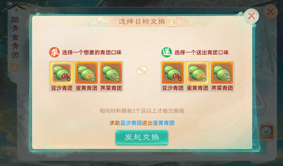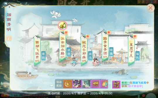 西湖美景三月天,春雨如酒柳如烟。说起清明时节,总会让人想到烟雨江南,大话西游手游清明活动上线,2026烟雨清明今日维护后开启,快跟着叶子猪到游戏里踏青赶春吧! 本次烟雨清明活动,大话官方一共推出了五个活动,含括了签到、战斗、收集、福利类的玩法,总体上难度不高,还可以获得雨师、风伯召唤兽,以及2级五行材料、终残、见闻录、神兵、龙之骨等珍稀奖励。 一、西湖飞纸鸢,签到即拿单人/双人纸鸢! 西湖美景,三月天呢....西湖美景在春天,趁着清明东风起,和小伙伴一起去放纸鸢吧!每日签到即可得单人纸鸢、双人纸鸢各一只,次日5:00过期。 所以领到风筝之后,记得前往长安城西湖船夫那里放飞纸鸢,单人纸鸢可获得金柳露和宠物经验加成,双人纸鸢有概率获得雨师、风伯特殊召唤兽。 二、江南烟水路,眼疾手快运送茶汤物资! 大话西游手游这个清明活动,设置了非常有趣的江南水陆送货,大家根据商户们的需求,上下左右操控小船来到摊位取货,如果不是目标中的货物,可以一键清空,拿到获取之后有几秒的时间可以送货,考验大家手速快不快了! 管家送来的特殊货物,送达之后很有可能积分翻倍,比如黄芪这一味药材,按时交付+10分,超时交付不扣分,3分钟内获得80分即为挑战成功。 不知道大家有没有发现,商户们需求送货的东西,都是一些中药材,比如陈皮、五味子、川贝、芡实、茯苓、黄芪等等,这是因为早春江南多雨,容易产生一些疫病,所以乌篷船需要给水阁送去这些茶汤物资。 完成任务之后,可以获得各种青团作为奖励,一共有三种青团:豆沙青团、蛋黄青团、荠菜青团。有一个小诀窍就是,你送货完成之后,立马把船摇回去摊位,这样就能第一时间拿到货送过去,节省了不少时间。 三、踏青食青团,收集青团送门派师傅! 大话手游收集青团这个玩法也非常简单,每天参加水路送货活动,获得各种不同的青团,集齐青团之后送给门派师傅,就能拿到300万师贡,累计送出3次、5次还有额外师贡。 PS:要是师贡能换成银两,那可真的是纯纯福利活动了,这时候肯定有叶子猪玩家要问了,那我怎么快速集齐三种不同口味的青团? 在世界频道喊一下或者找游戏内好友,求助青团送出多余的青团就可以了。需要注意的是,青团只能通过江南水路送货获得,所以每天都要记得摇摇乌篷船送货呀! 四、祓厄去邪疾,每天6环拿神兵终残! 清明除邪祟,三人及以上组队抓鬼,一共要抓6次小怪,进入战斗之后可选择驱邪物品,雨打芭蕉提升风雷水火鬼火狂暴率、毒法伤害; 晴空万里可提升我方单位控制抗性,飞冰怒雹提升命中率、狂暴率、破防概率和破防程度,有普通、困难、精英、炼狱四种模式可选,大家根据自己队伍实力,选择相对应的即可。 这个活动可掉落1级五行、2级五行材料、1级神兵、聚魄丹、终极残卷,交易服可上架摆摊卖出银两,还是挺不错的,每天6环除邪祟可以跑一跑。 五、星君下凡,与地煞星共享活动次数! 星君下凡这个活动,每个半点刷新,与地煞星共享次数,全服开放从4月2日维护后一直开启至4月9日5点。 这个没什么好说的,就是地煞增加了星君,大家可以每日组队进行挑战,然后这个活动他是产出1级神兵和见闻录的,没错,奖励比地煞好多了,杀星可以优先选择星君。 以上就是今天的所有内容,更多大话手游攻略、搬砖组队分享,大家可访问叶子猪大话手游专区:http://xy2.yzz.cn/sy/。 清明假期想搬砖的朋友,欢迎加入叶子猪大话交易服&交流群,担保出银、看号估价、寄售回收,自由交易,没有任何限制。 PS:需要其他交易群,找群主叶小猪拉一下 [编辑:ssc]